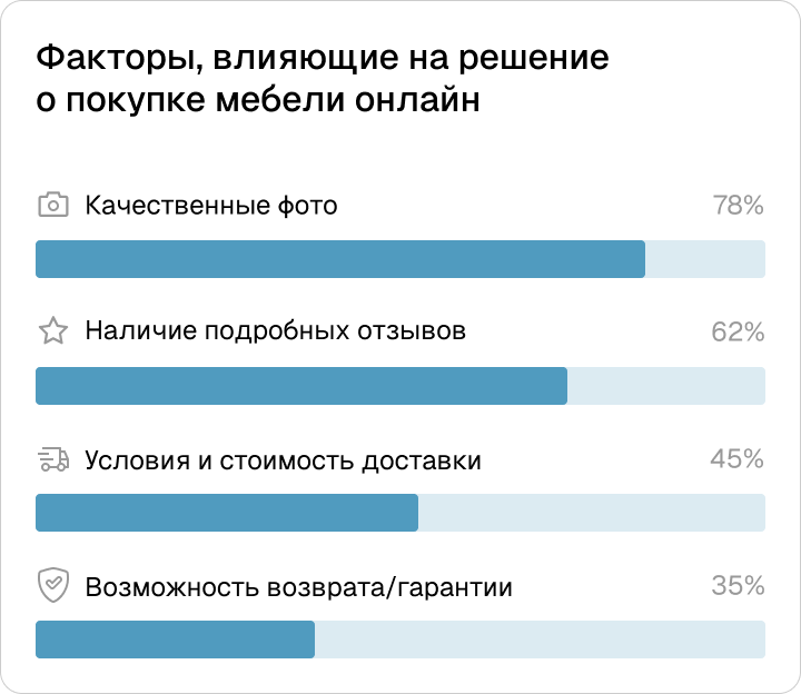 Система фильтров должна быть интуитивной: для диванов важен механизм трансформации, для шкафов – количество дверей. Быстрый ответ в чате или наличие фотографий в реальном интерьере часто становятся тем самым решающим фактором для покупки. Прозрачность цен тоже критична; если мебель делается на заказ, человеку нужен инструмент, чтобы понять, как выбор материала меняет итоговую сумму.